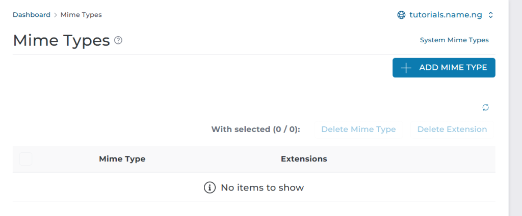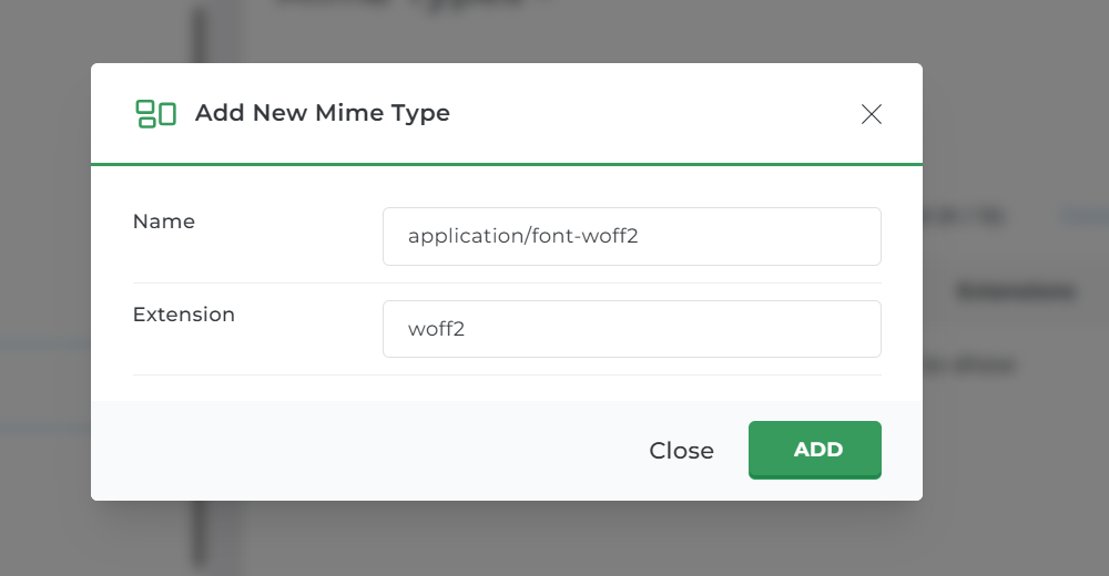 Once added, DirectAdmin will apply the new MIME Type immediately.