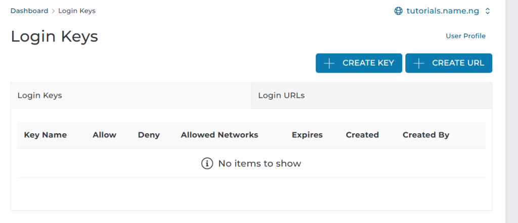 Inside the Login Keys section, you can: