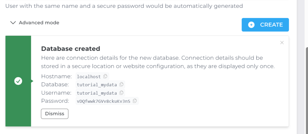 Once your database and user are set up, you can access it using:
