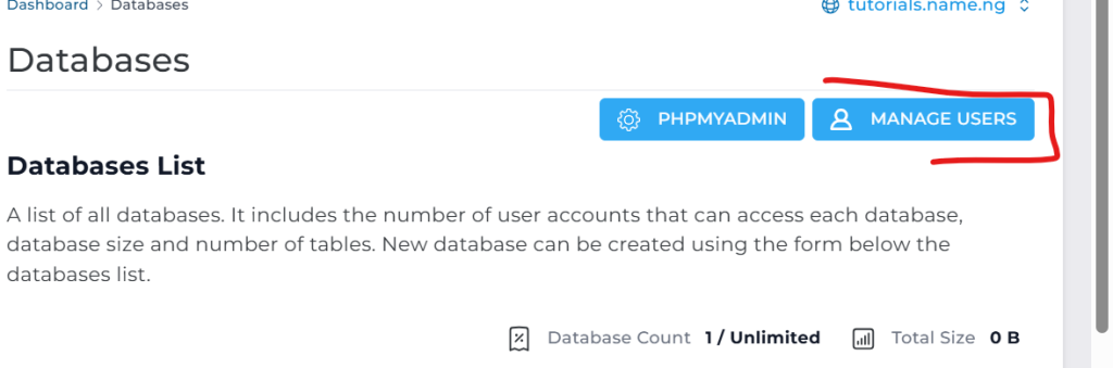 Delete unused databases and users to keep your hosting environment clean.