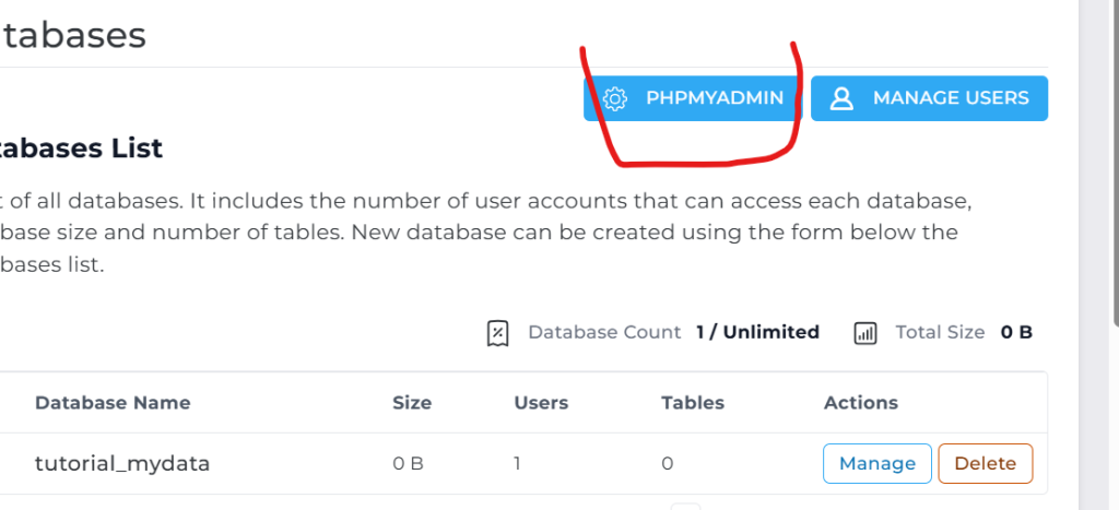 Click on it to open the database management interface.