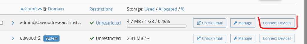 By default, cPanel email accounts can be configured with any mail client (e.g., Outlook, Thunderbird, Apple Mail) or webmail applications (Roundcube, Horde).